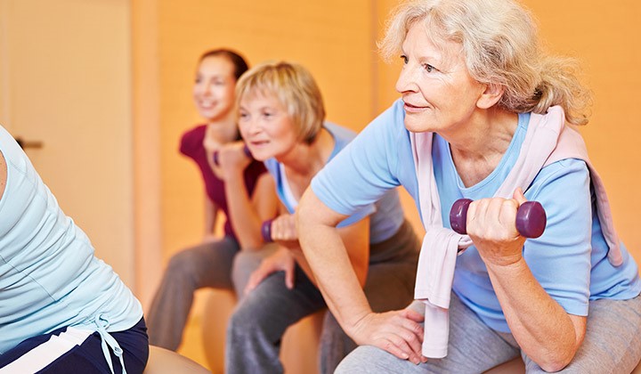 Etwa ab dem 30. Geburtstag erneuert sich die Knochenmasse immer langsamer und die Knochendichte nimmt stetig ab. Damit der Knochen seine Stützfunktion weiter behält, sind Bewegung in Form von moderatem Krafttraining (z. B. mit Theraband) und gesunde Ernährung mit ausreichend Kalzium und Vitamin D wichtig.